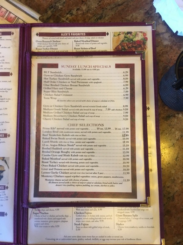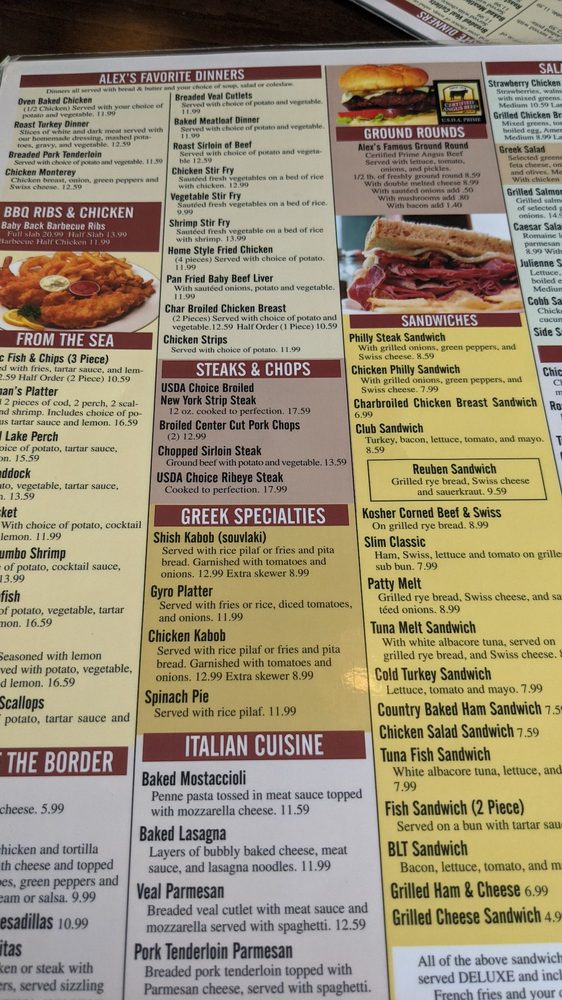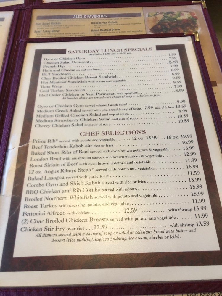 Alex's of Rochester offers a delightful fusion of Greek, Desserts, and Salad cuisines. Located in Rochester Hills, MI, this restaurant boasts a diverse menu with options for takeout, reservations, delivery, and catering services. The warm ambiance and attentive waitstaff create a welcoming dining experience. Customers rave about the flavorful and tender kabobs, delicious diner food, and exceptional service provided by the staff. The extensive menu ensures something for everyone, from breakfast options to hearty sandwiches and classic dishes like boiled dinner for St. Patrick's Day. With a clean and organized setting, Alex's of Rochester stands out for its consistently high-quality food and friendly atmosphere. Whether you're in the mood for a gyro, salad, or a satisfying breakfast, this restaurant is sure to exceed your expectations.